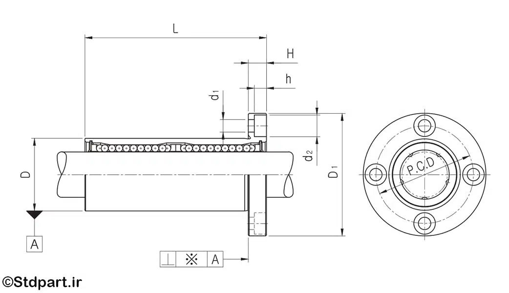 | Static Load [N] | Dynamic Load [N] | h [mm] | d2 [mm] | d1 [mm] | F [mm] | A [mm] | W [mm] | H [mm] | D1 [mm] | L [mm] | D [mm] | dr [mm] | Part Number |