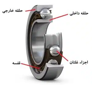 • قفسه یا نگهدارنده (Cage) — وظیفه موقعیت‌دهی و جداسازی عناصر غلتان را برای جلوگیری از تداخل و سایش متقابل بر عهده دارد.